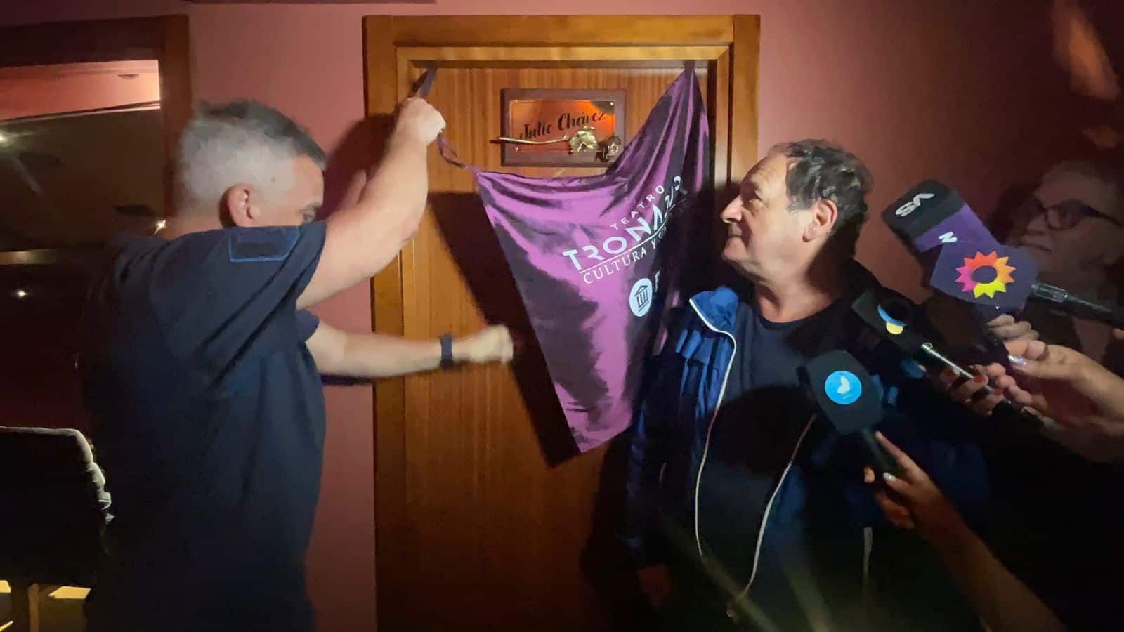 Julio Chávez fue homenajeado este viernes, por iniciativa del empresario Marcelo González, en el Teatro Tronador BNA – donde se encuentra actualmente protagonizando “La Ballena» – mediante el bautismo de uno de los palcos de esta emblemática sala con su nombre.